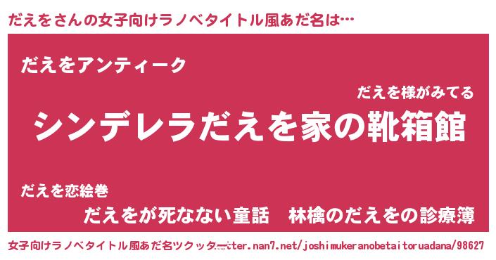 | 男性向けラノベタイトル風あだ名 | 『冴えないだえをの育てかた』 |