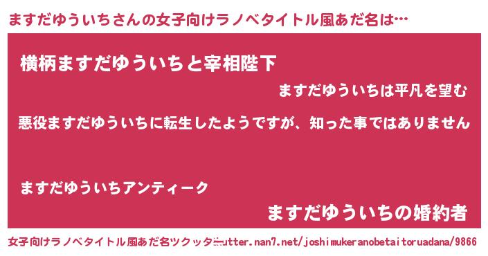 | 男性向けラノベタイトル風あだ名 | 『この素晴らしい世界にますだゆういちを!』 |