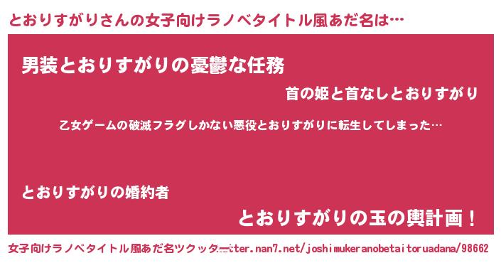 | 意味不明あだ名 | 『住所不定無職とおりすがり(14歳)』 |