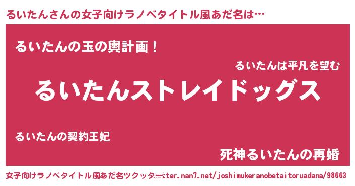 | 男性向けラノベタイトル風あだ名 | 『Re:るいたんから始める異世界生活』 |