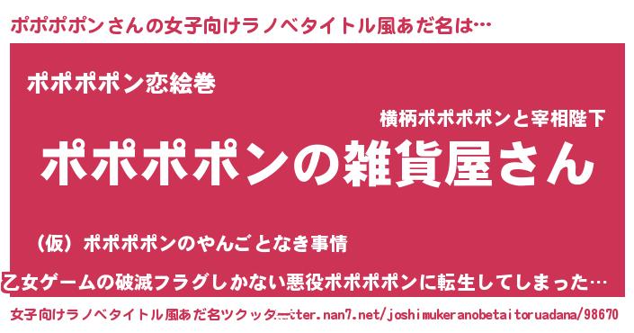 | 男性向けラノベタイトル風あだ名 | 『やはりポポポポンの青春ラブコメはまちがっている 』 |