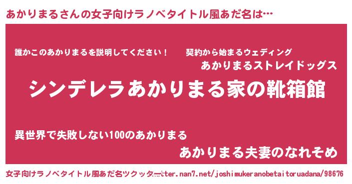 | 男性向けラノベタイトル風あだ名 | 『冴えないあかりまるの育てかた』 |