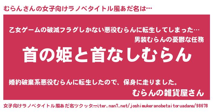 | 男性向けラノベタイトル風あだ名 | 『はたらくむらんさま!』 |