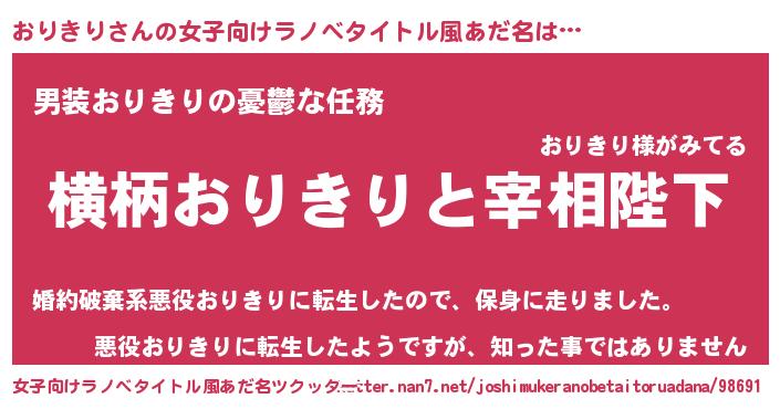 | 胡散臭い通販商品みたいなあだ名 | 『あなたにだけ特別に提供する世界で10本だけ現存している希少なブランデー…その名も「おりきり」』 |