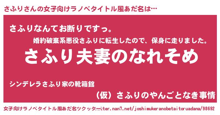 | ヒーロー風カッコイイあだ名 | 『正義の使者さふり』『超時空戦士サフリ』 |