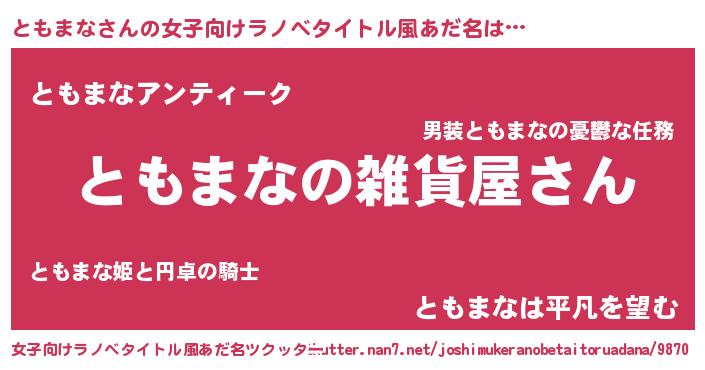 | ヒーロー風カッコイイあだ名 | 『ウルトラともまなマン』『天弓騎士トモ』 |