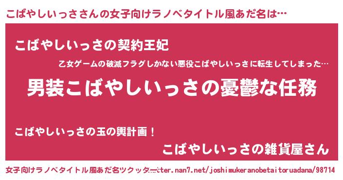 | ヒーロー風カッコイイあだ名 | 『ネオコバヤシイッサ』『仮面コバダー』 |