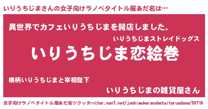 | 男性向けラノベタイトル風あだ名 | 『ノーゲーム・ノーイリウチジマ』 |