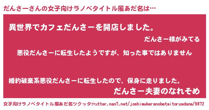| 男性向けラノベタイトル風あだ名 | 『この素晴らしい世界にだんさーを!』 |
