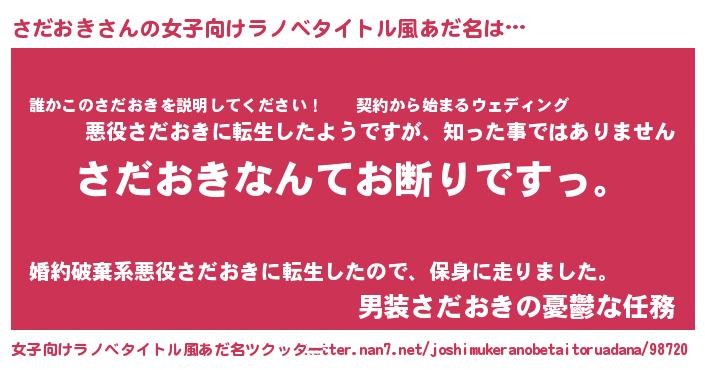 | 肩書あだ名 | 『さだおき閣下』『さだおき社長令嬢』 |