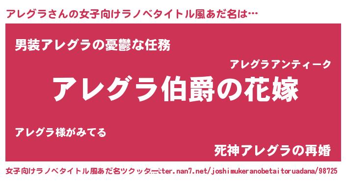 | 欧米人風あだ名 | 『アレグラクリステル』 |