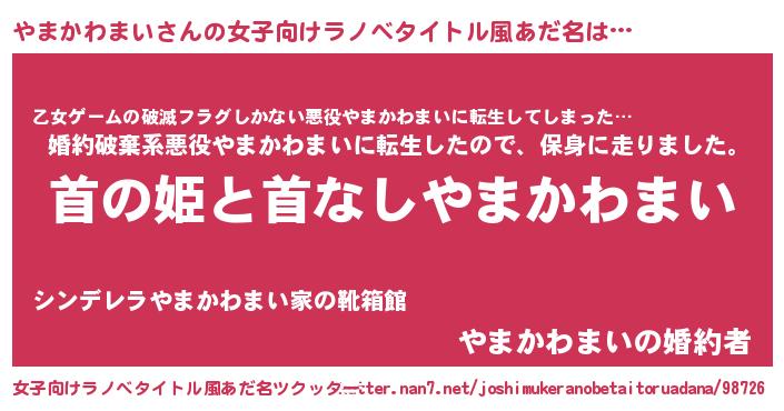 | 胡散臭い通販商品みたいなあだ名 | 『世界中を虜にした100年もののヴィンテージワイン…その名も「やまかわまい」』 |