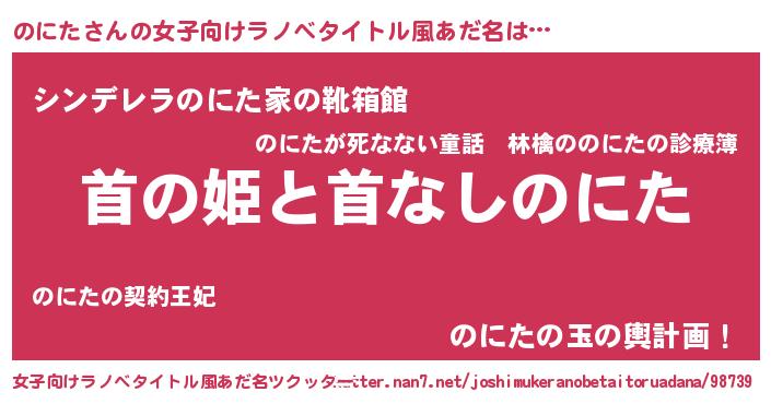 | ヒーロー風カッコイイあだ名 | 『仮面ノニダー』『ネオノニタ』 |