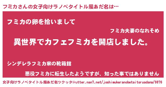 | 胡散臭い通販商品みたいなあだ名 | 『前代未聞の健康食品…その名も「フミカ」』 |