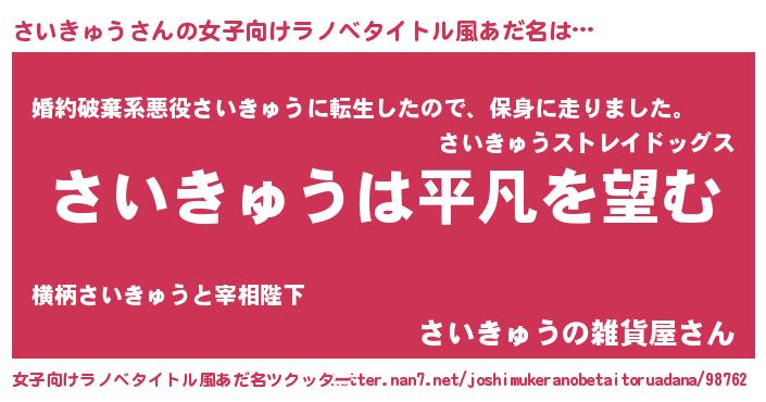 | ヒーロー風カッコイイあだ名 | 『暗黒騎士サイ』『超時空戦士サイキュウ』 |