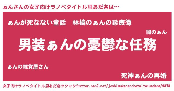 | 意味不明あだ名 | 『住所不定無職ぁん(85歳)』『自称ぁん』 |