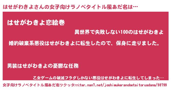 | ヒーロー風カッコイイあだ名 | 『正義の使者はせがわきよ』 |