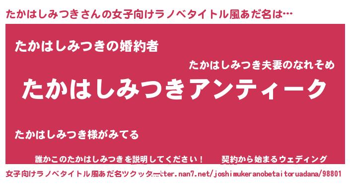 | 男性向けラノベタイトル風あだ名 | 『魔法科高校のたかはしみつき』 |