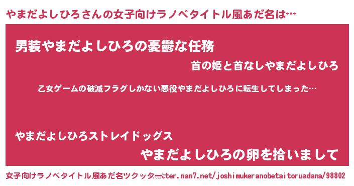 | 男性向けラノベタイトル風あだ名 | 『この素晴らしい世界にやまだよしひろを!』 |