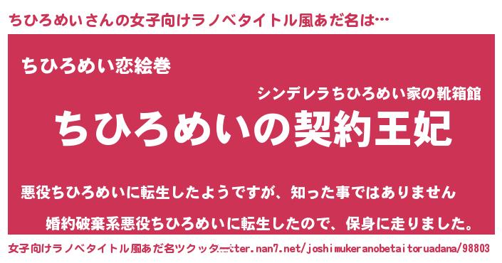 | 意味不明あだ名 | 『永久保存ちひろめい』『自称ちひろめい』 |