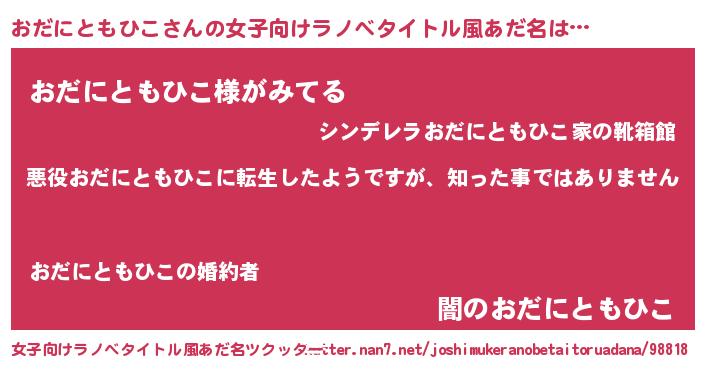 | 男性向けラノベタイトル風あだ名 | 『この素晴らしい世界におだにともひこを!』 |