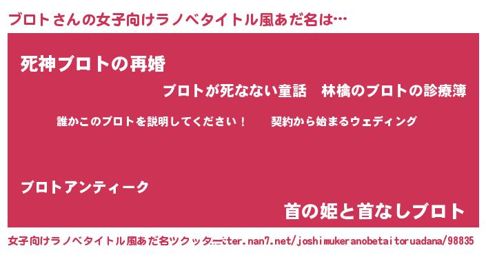 | 男性向けラノベタイトル風あだ名 | 『ブロトアートオンライン』 |