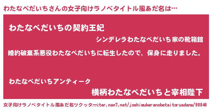 | 胡散臭い通販商品みたいなあだ名 | 『来世でも幸せになれる健康食品…その名も「わたなべだいち」』 |