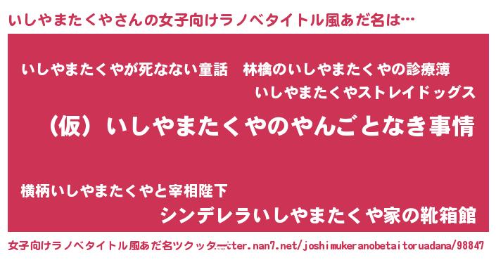 | 男性向けラノベタイトル風あだ名 | 『いしやまたくやの憂鬱』 |