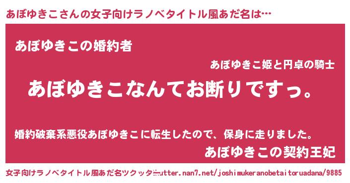 | 男性向けラノベタイトル風あだ名 | 『魔法科高校のあぼゆきこ』 |