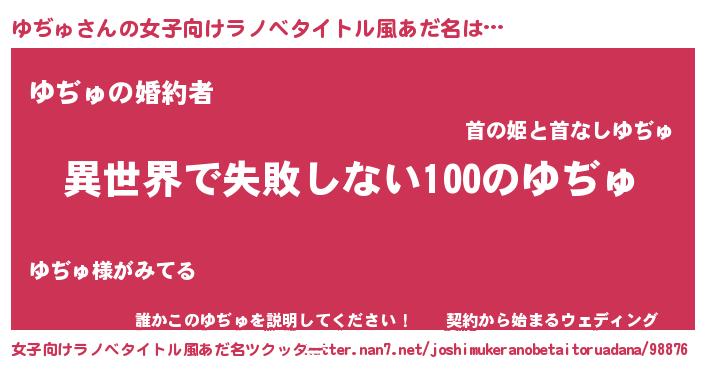 | 意味不明あだ名 | 『永久保存ゆぢゅ』『ゆぢゅフォーエバー』 |