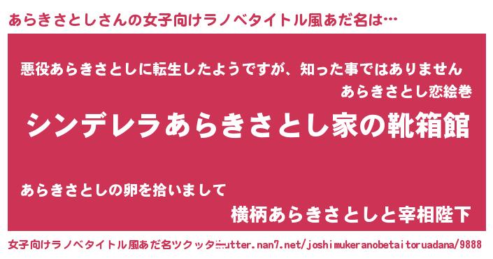| 意味不明あだ名 | 『住所不定無職あらきさとし(47歳)』 |