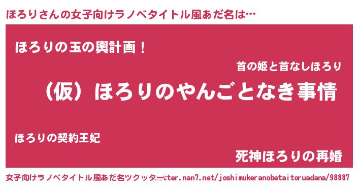 | 男性向けラノベタイトル風あだ名 | 『ほろりの憂鬱』『はたらくほろりさま!』 |
