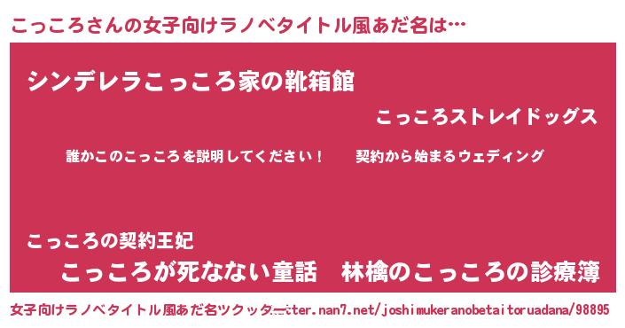| 胡散臭い通販商品みたいなあだ名 | 『億万長者になれるブレスレット…その名も「こっころ」』 |