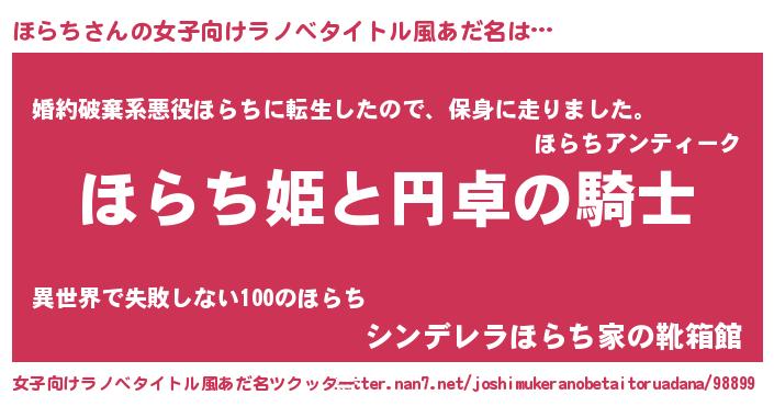 | 男性向けラノベタイトル風あだ名 | 『ほらちの憂鬱』『ホラチスレイヤー』 |
