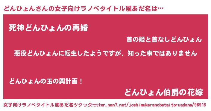 | 男性向けラノベタイトル風あだ名 | 『この素晴らしい世界にどんひょんを!』 |