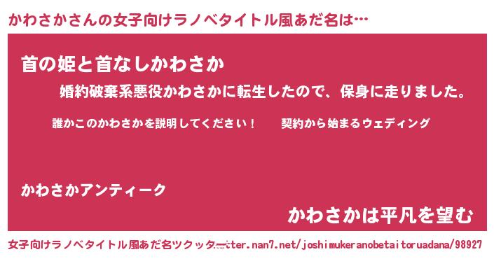 | 胡散臭い通販商品みたいなあだ名 | 『億万長者になれる霊験あらたかなお札…その名も「かわさか」』 |