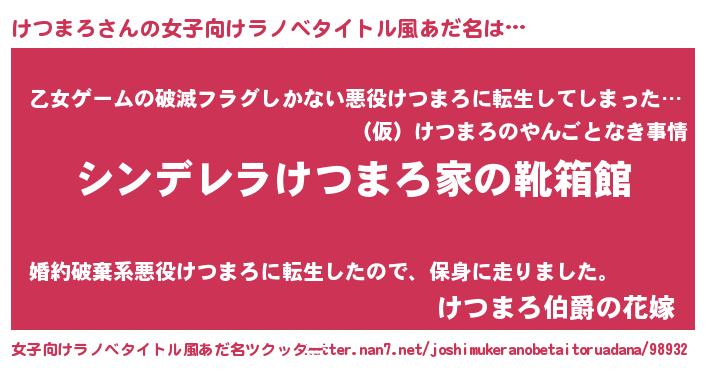 | 男性向けラノベタイトル風あだ名 | 『緋弾のケツマロ』『魔弾の王とけつまろ』 |