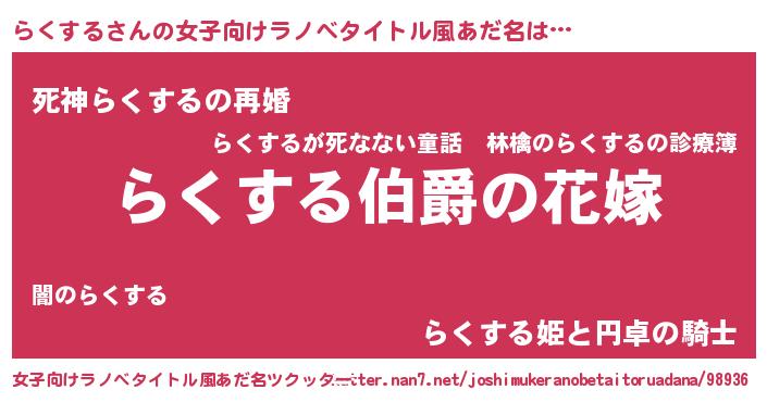 | 意味不明あだ名 | 『らくするフォーエバー』『自称らくする』 |