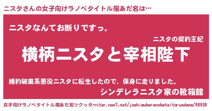| 意味不明あだ名 | 『自称ニスタ』『永久保存ニスタ』 |