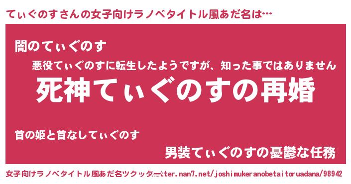 | 伝説のあだ名 | 『救世主となる占い師てぃぐのす』 |
