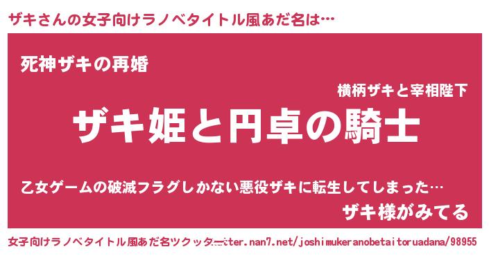 | 男性向けラノベタイトル風あだ名 | 『ザキの憂鬱』『ノーゲーム・ノーザキ』 |