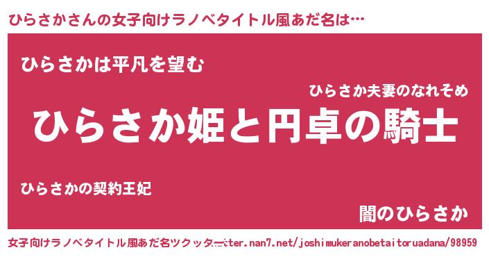 | 男性向けラノベタイトル風あだ名 | 『ひらさかの憂鬱』 |