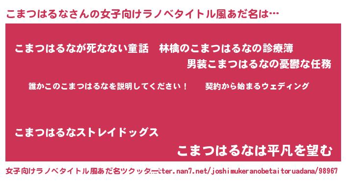 | 男性向けラノベタイトル風あだ名 | 『コマツハルナアートオンライン』 |