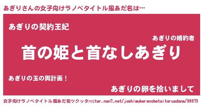 | 男性向けラノベタイトル風あだ名 | 『はたらくあぎりさま!』 |