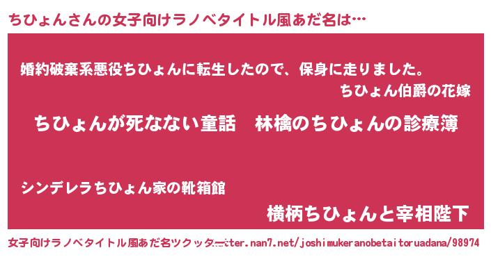| 男性向けラノベタイトル風あだ名 | 『魔弾の王とちひょん』『緋弾のチヒョン』 |