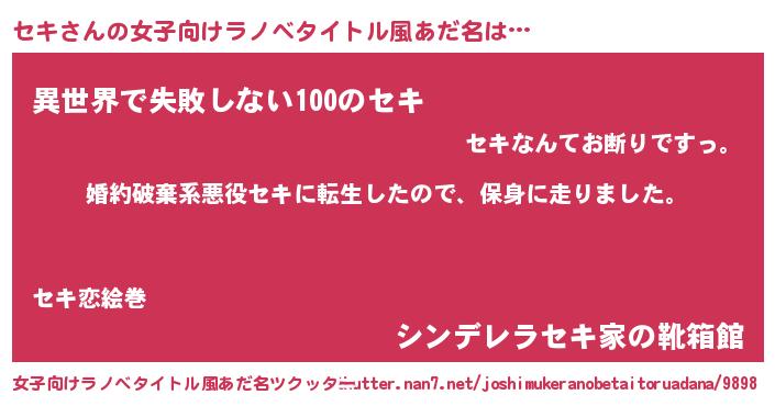 | 男性向けラノベタイトル風あだ名 | 『セキスレイヤー』『緋弾のセキ』 |