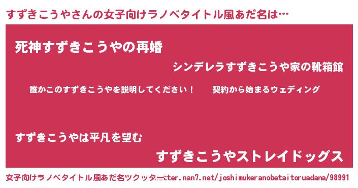 | 胡散臭い通販商品みたいなあだ名 | 『億万長者になれるブレスレット…その名も「すずきこうや」』 |