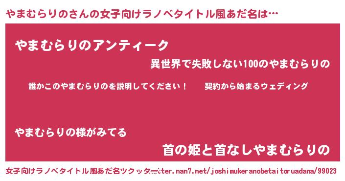 | 男性向けラノベタイトル風あだ名 | 『ヤマムラリノアートオンライン』 |
