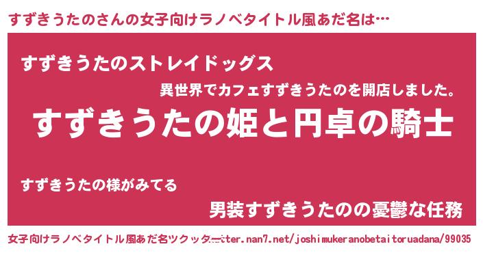 | 男性向けラノベタイトル風あだ名 | 『スズキウタノアートオンライン』 |