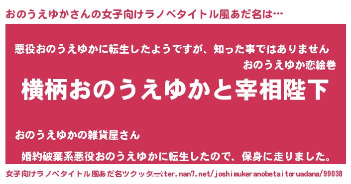 | 意味不明あだ名 | 『住所不定無職おのうえゆか(7歳)』 |